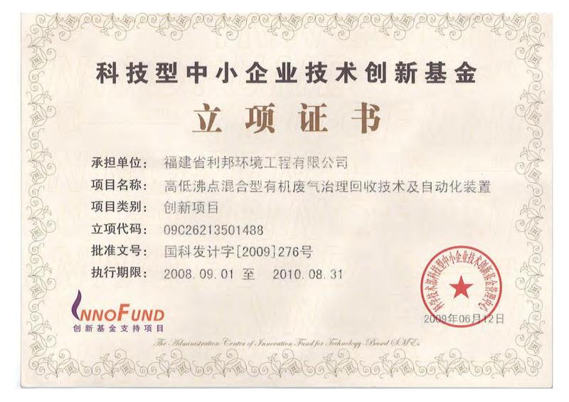 福建省科技型企業(yè)、福建省創(chuàng)新性企業(yè)、福建省首批科技小巨人、福建省“專精特新”專業(yè)化企業(yè),擁有企業(yè)研發(fā)中心、福建省有機廢氣凈化設備工程技術研發(fā)中心;公司產品獲得科技部、環(huán)保部、商務部、國家質量監(jiān)督總局頒發(fā)的“國家重點新產品”證書,“中低濃度揮發(fā)性有機物回收凈化裝備”被列入《國家鼓勵發(fā)展的重大環(huán)保技術裝備目錄(2017年版)》;公司核心發(fā)明專利分別獲得了中國專利獎優(yōu)秀獎、福建省專利獎二等獎等專利獎項,其中兩個核心技術分別獲得福建省技術發(fā)明獎二等獎、福建省科學技術進步獎二等獎;公司